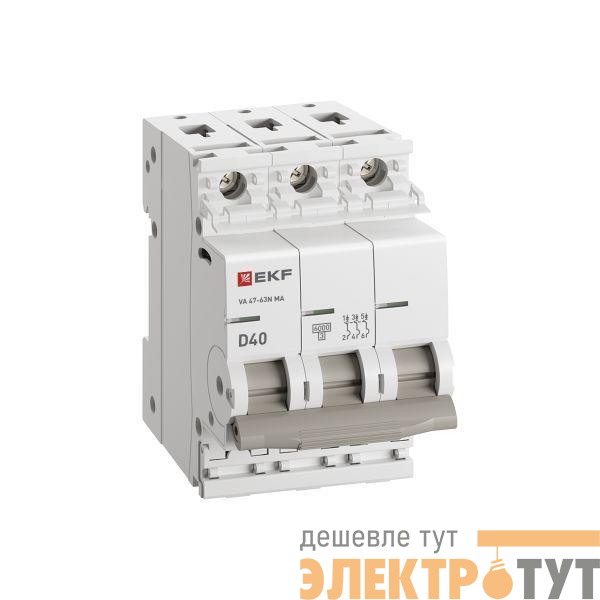 M63MA6340D | Выключатель автоматический 3п D 40А 6кА ВА 47-63N MA без теплового расцеп. PROxima EKF