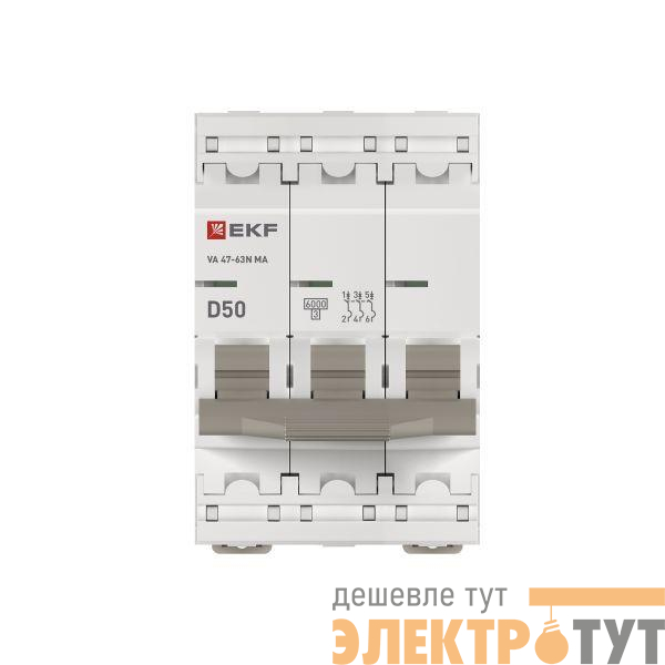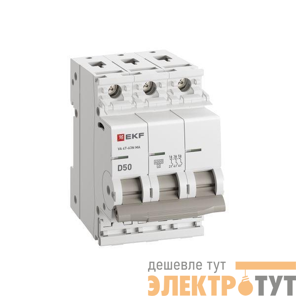 M63MA6350D | Выключатель автоматический 3п D 50А 6кА ВА 47-63N MA без теплового расцеп. PROxima EKF