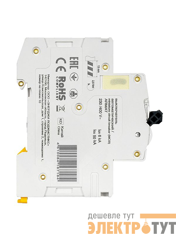 | Номин. отключающая способность при коротком замыкании Icu IEC 60898 при 400 В: | 10 кА |
