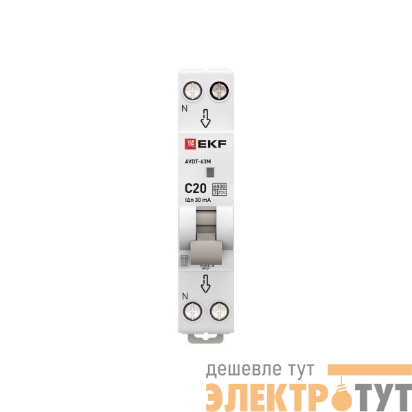 D636EA20C30 | Выключатель автоматический дифференциального тока 1мод. C 20А 30мА тип А 6кА АВДТ-63М (электрон.) PROxima EKF