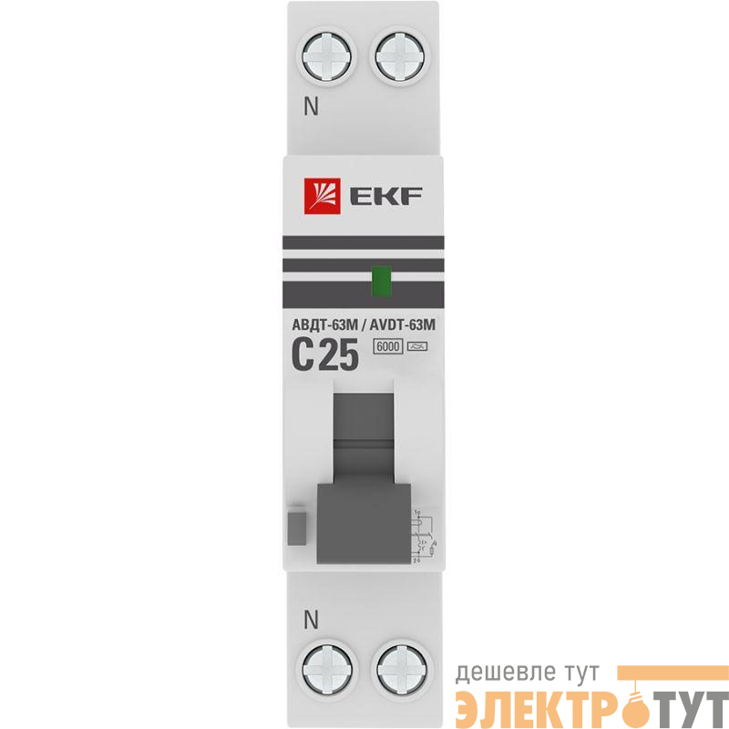 D636EA25C30 | Выключатель автоматический дифференциального тока 1мод. C 25А 30мА тип А 6кА АВДТ-63М (электрон.) PROxima EKF