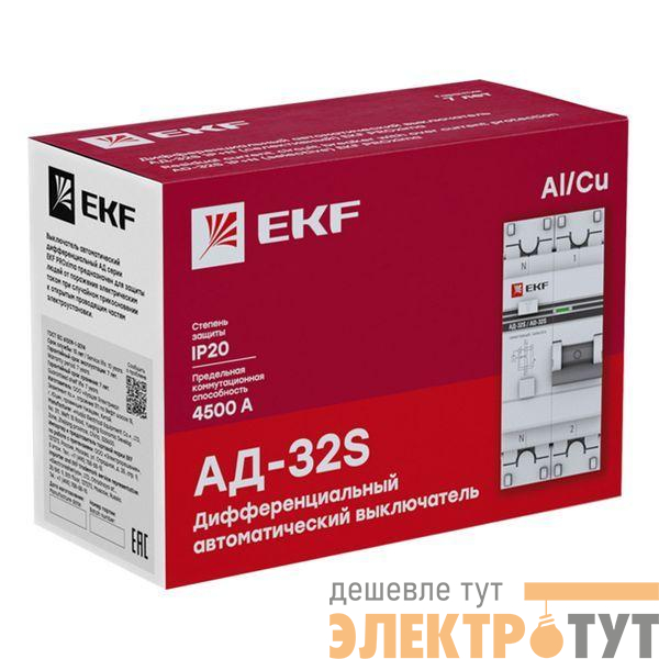 Дифференциальный автоматический выключатель АД-32 EKF PROxima представляет собой аппарат, сочетающий функции автоматического выключателя с устройством защитного отключения. При обнаружении автоматическим выключателем в защищаемом участке сети тока утечки (повреждения) на землю или сверхтока (тока перегрузки или короткого замыкания) происходит срабатывание устройства, приводящее к отключению защищаемой сети. Ассортимент АД-32 дополнен дифавтоматами АД-32 тип А и АД-32 селективными.