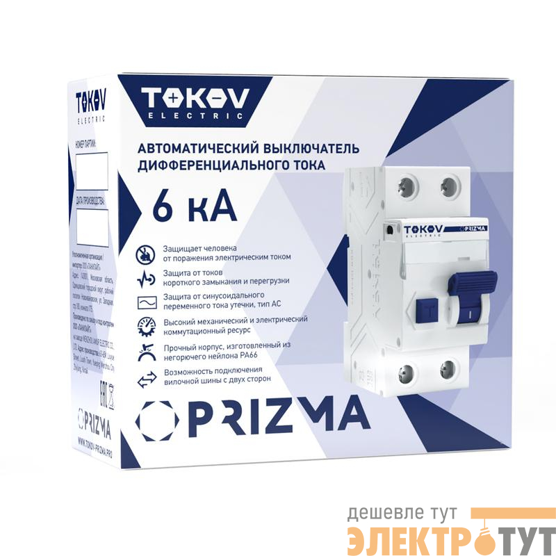 TKE-PZ60-RCBO-2-40-30-AC | Выключатель автоматический дифференциального тока 2п (1P+N) C 40А 30мА тип AC 6кА PRIZMA TOKOV ELECTRIC