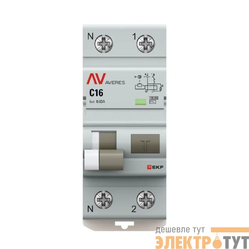 Выключатель автоматический дифференциального тока 2п (1P+N) C 16А 30мА тип AC 10кА DVA-10 AVERES EKF rcbo10-1pn-16C-30-ac-av