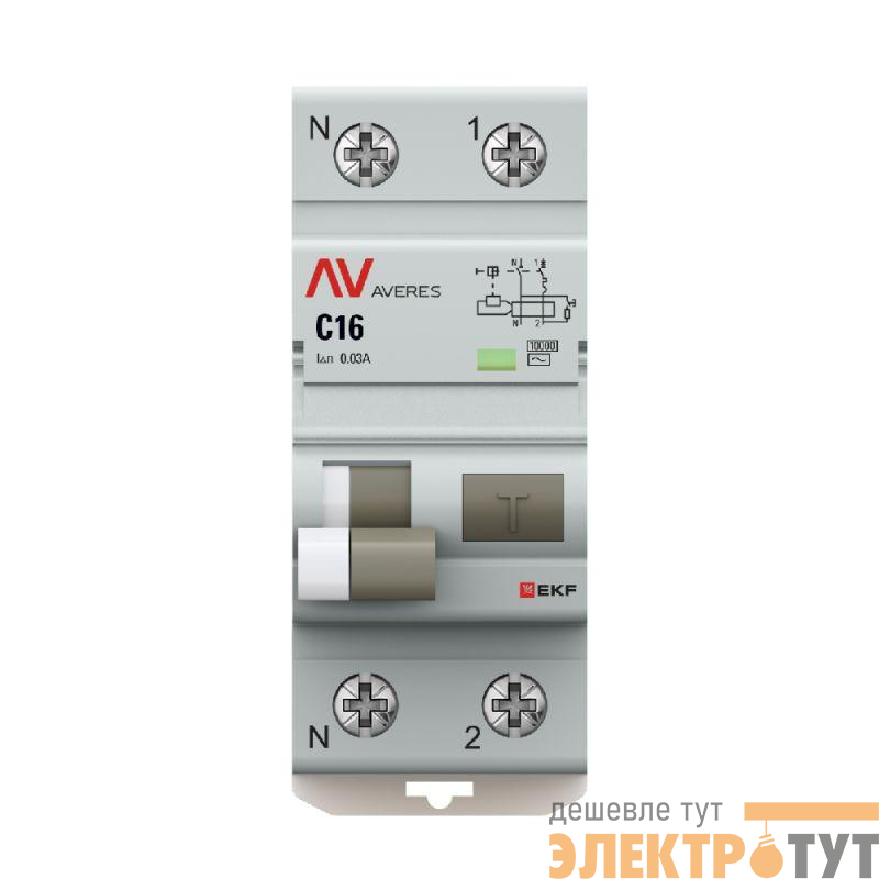 rcbo10-1pn-16C-30-ac-av | Выключатель автоматический дифференциального тока 2п (1P+N) C 16А 30мА тип AC 10кА DVA-10 AVERES EKF