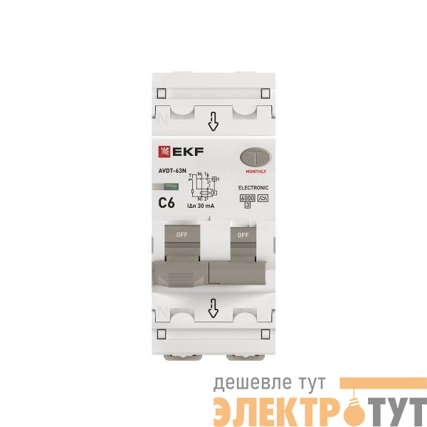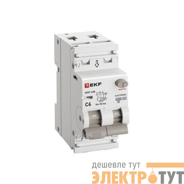 D63N26EA6C30 | Выключатель автоматический дифференциального тока 2п (1P+N) C 6А 30мА тип A 6кА АВДТ-63N (электрон.) PROxima EKF