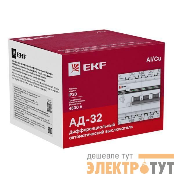 Дифференциальный автоматический выключатель АД-32 EKF PROxima представляет собой аппарат, сочетающий функции автоматического выключателя с устройством защитного отключения. При обнаружении автоматическим выключателем в защищаемом участке сети тока утечки (повреждения) на землю или сверхтока (тока перегрузки или короткого замыкания) происходит срабатывание устройства, приводящее к отключению защищаемой сети. Ассортимент АД-32 дополнен дифавтоматами АД-32 тип А и АД-32 селективными.