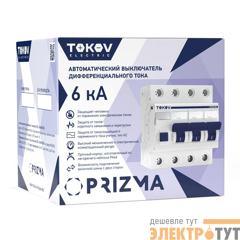 TKE-PZ60-RCBO-4-20-30-AC | Выключатель автоматический дифференциального тока 4п (3P+N) C 20А 30мА тип AC 6кА PRIZMA TOKOV ELECTRIC