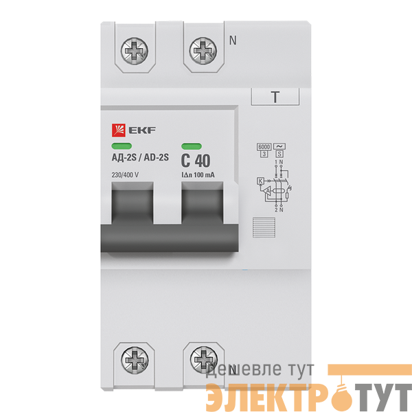 DA2-6-40-100S-pro | Выключатель автоматический дифференциального тока C 40А 100мА тип AC 6кА АД-2 S (электрон.) защита 270В PROxima EKF