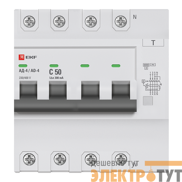 DA4-6-50-300-pro | Выключатель автоматический дифференциального тока C 50А 300мА тип AC 6кА АД-4 (электрон.) защита 270В PROxima EKF