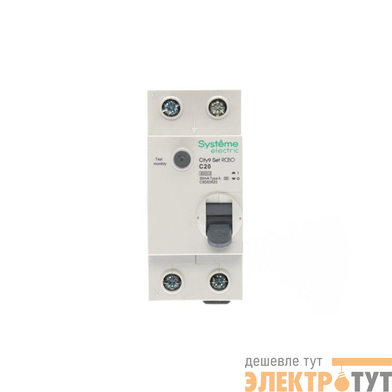 Автоматические выключатели дифференциального тока (АВДТ) серии City9 Set Systeme Electric,1P+N, номинальный ток 20 А, характеристика С, Icn = 6 кА, ток утечки 30 мА, тип А. АВДТ применяется в электрических сетях напряжением 230В. Предназначен для защиты сети от перегрузок, людей от поражения электрическим током и токов короткого замыкания. Уставка по току утечки 30 мА обеспечивает гарантированную защиту людей при прямом прикосновении. Кнопка тест обеспечивает проверку работоспособности аппарата. Крепление на DIN-рейку шириной 35 мм. Безопасные клеммы (ранее Schneider Electric R9D55620).