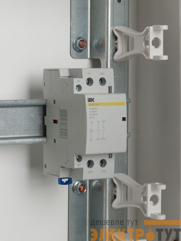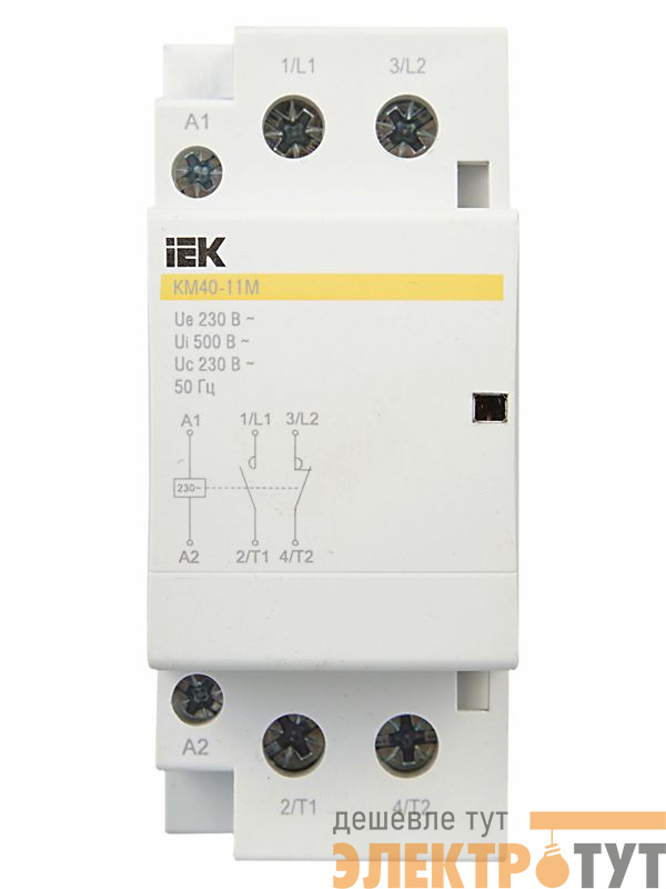 Контакторы модульные типа КМ торговой марки IEK предназначены для применения в сетях переменного тока напряжением до 400 В частоты 50 Гц и служат для коммутации слабоиндуктивных нагрузок с номинальным током до 63 А.