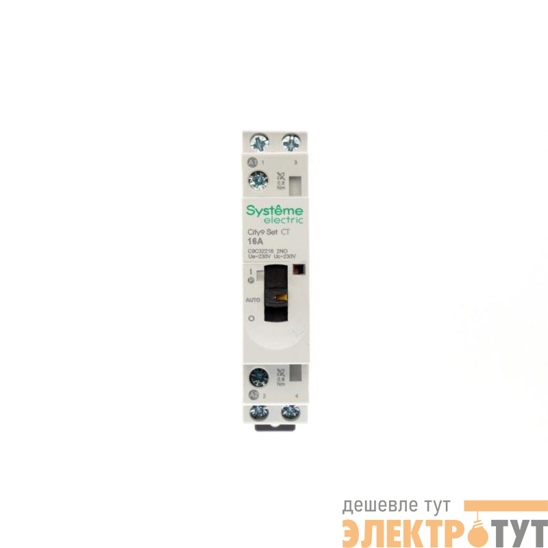 Контактор CT серии City9 Set Systeme Electric на номинальный ток 16 А (AC7a / AC7b), 2НО, номинальное напряжение силовой цепи - 230В, напряжение цепи управления - 230В, ширина 18 мм.<br />- В сочетании с автоматическими выключателями или АВДТ обеспечивают дистанционное управление в однофазных и трехфазных цепях переменного тока (освещение, отопление, вентиляция, жалюзи и т.п.)<br />- Управление неприоритетными нагрузками с помощью мастер-выключателя.<br />- Механический индикатор положения контактов. <br />- Крепление защёлкиванием на DIN-рейке шириной 35 мм.