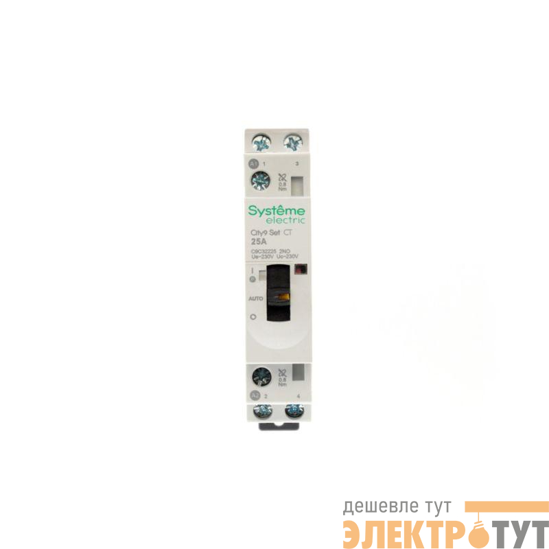 Контактор CT серии City9 Set Systeme Electric на номинальный ток 25 А (AC7a / AC7b), 2НО, номинальное напряжение силовой цепи - 230В, напряжение цепи управления - 230В, ширина 18 мм.<br />- В сочетании с автоматическими выключателями или АВДТ обеспечивают дистанционное управление в однофазных и трехфазных цепях переменного тока (освещение, отопление, вентиляция, жалюзи и т.п.)<br />- Управление неприоритетными нагрузками с помощью мастер-выключателя.<br />- Механический индикатор положения контактов. <br />- Крепление защёлкиванием на DIN-рейке шириной 35 мм.