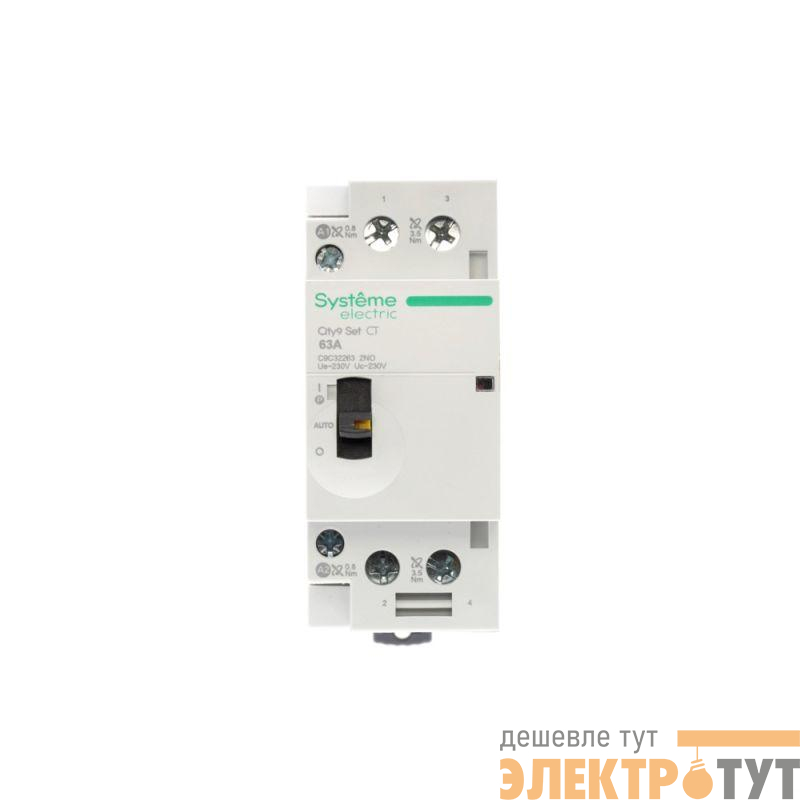 Контактор CT серии City9 Set Systeme Electric на номинальный ток 63 А (AC7a / AC7b), 2НО, номинальное напряжение силовой цепи - 230В, напряжение цепи управления - 230В, ширина 36 мм.<br />- В сочетании с автоматическими выключателями или АВДТ обеспечивают дистанционное управление в однофазных и трехфазных цепях переменного тока (освещение, отопление, вентиляция, жалюзи и т.п.)<br />- Управление неприоритетными нагрузками с помощью мастер-выключателя.<br />- Механический индикатор положения контактов. <br />- Крепление защёлкиванием на DIN-рейке шириной 35 мм.