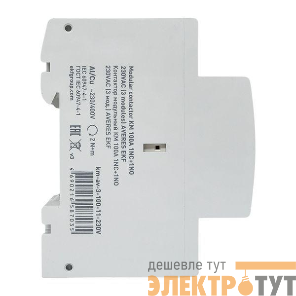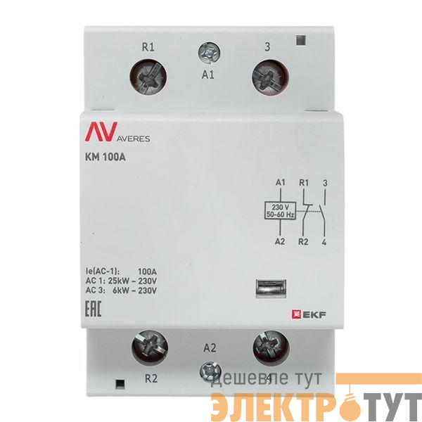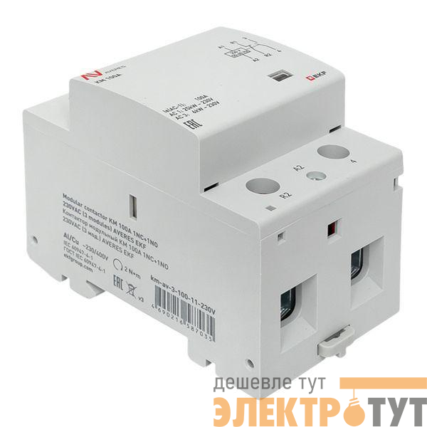 km-av-3-100-11-230V | Контактор модульный КМ 100А 1NC+1NO 230В AC (3 мод.) AVERES EKF