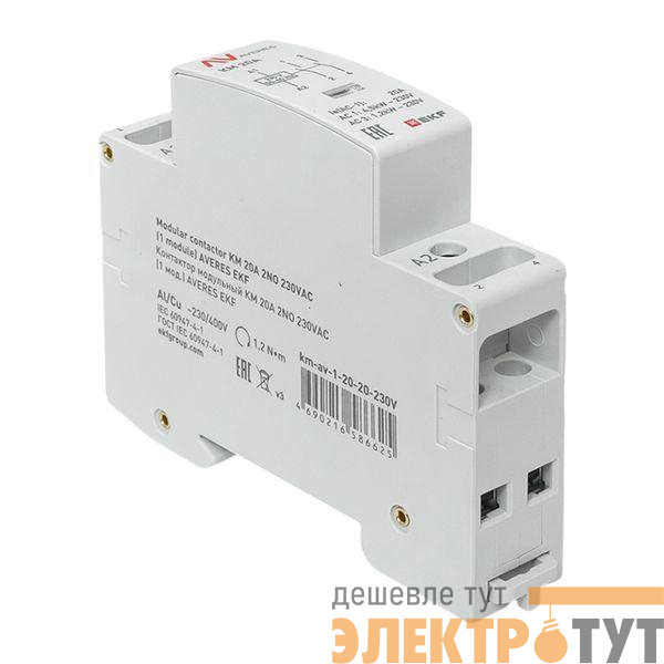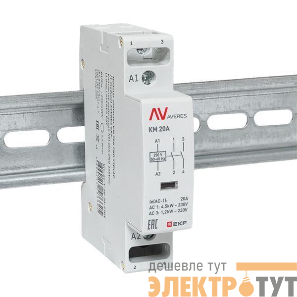 km-av-1-20-20-230V | Контактор модульный КМ 20А 2NО 230В AC (1 мод.) AVERES EKF
