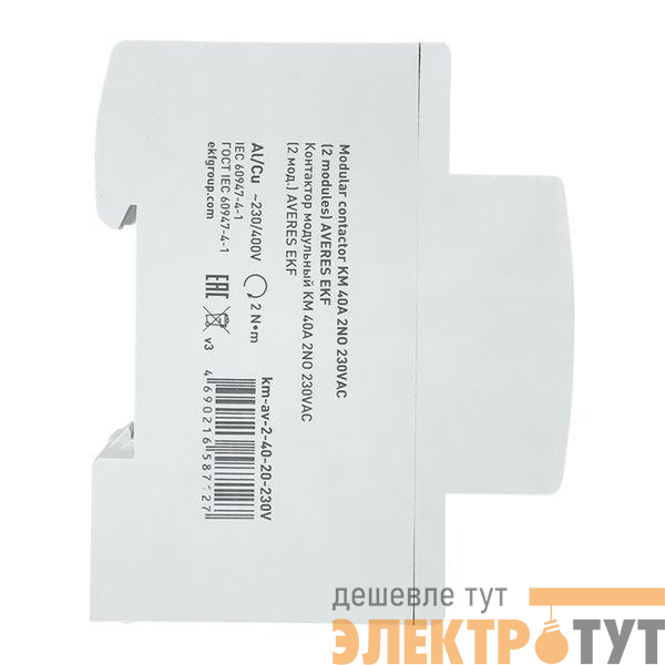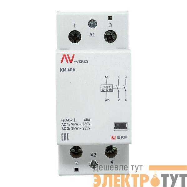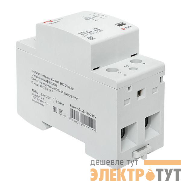 km-av-2-40-20-230V | Контактор модульный КМ 40А 2NО 230В AC (2 мод.) AVERES EKF