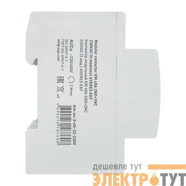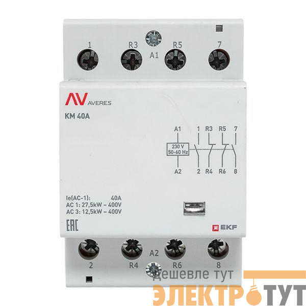 km-av-3-40-22-230V | Контактор модульный КМ 40А 2NO+2NC 230В AC (3 мод.) AVERES EKF