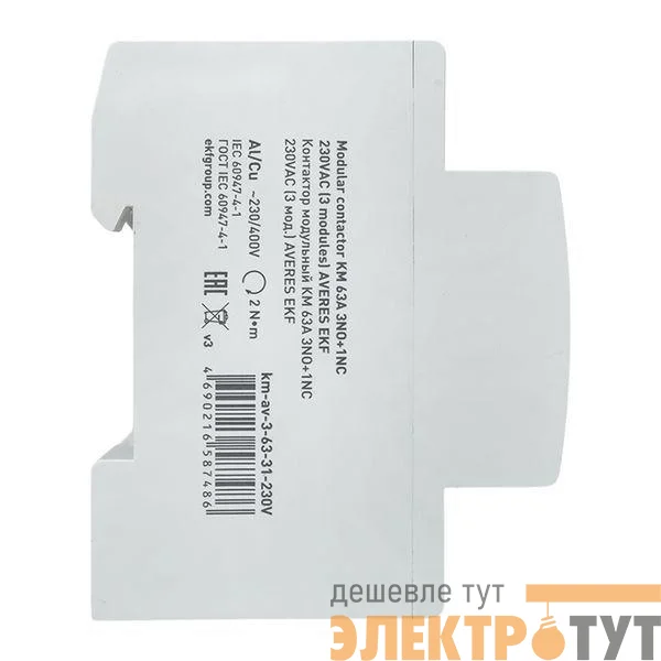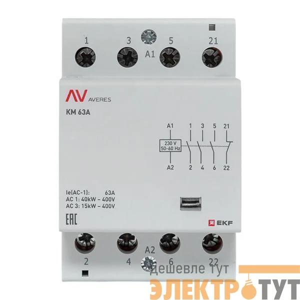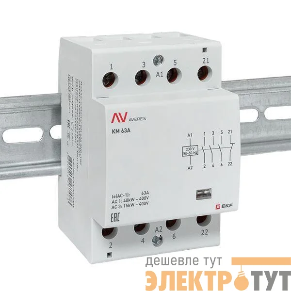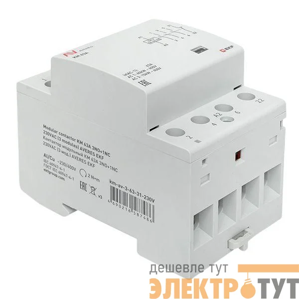 Контактор модульный КМ 63А 3NO+1NC 230В AC (3 мод.) AVERES EKF km-av-3-63-31-230V