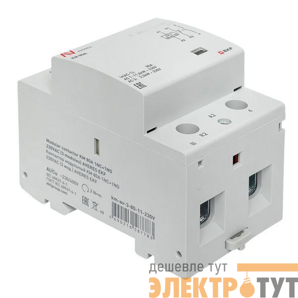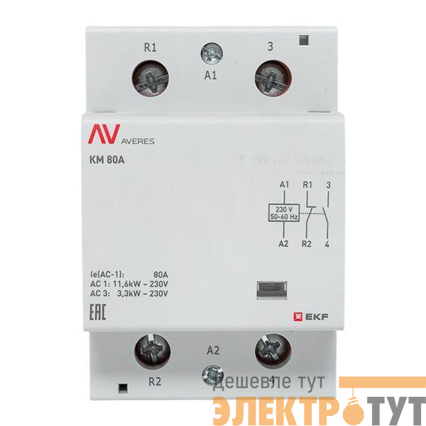 km-av-3-80-11-230V | Контактор модульный КМ 80А 1NC+1NO 230В AC (3 мод.) AVERES EKF