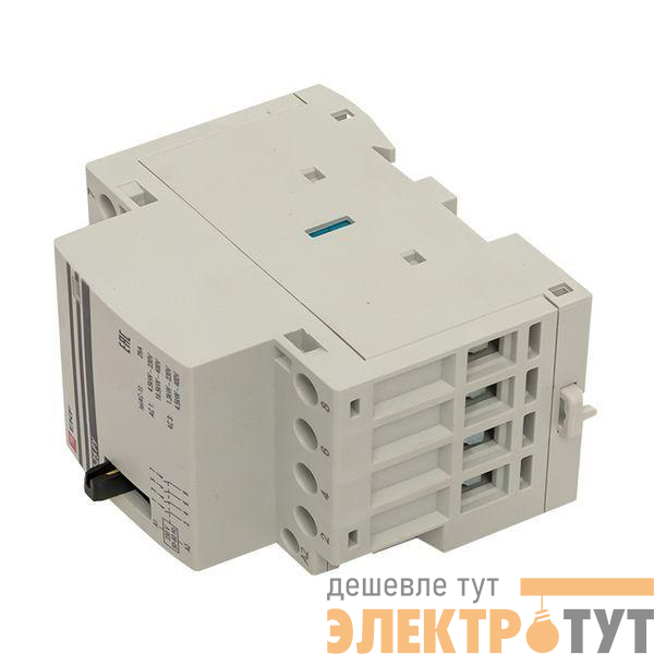 Модульные контакторы представляют из себя контактор в классическом корпусе модульного оборудования. Он состоит из неподвижных контактов, подвижных контактов, которые закреплены в подвижной части магнитной системы. Неподвижная часть магнитной системы закреплена жестко в корпусе КМ. Пружина препятствует смыканию контактов. При подаче напряжения на катушку управления в магнитной системе контактора возникает магнитное поле, которое, преодолевая сопротивление пружины, смыкает магнитную систему и замыкает контакты. При отключении напряжения с катушки управления пружина размыкает контакты. Возможна коммутация алюминиевым и медным проводом.