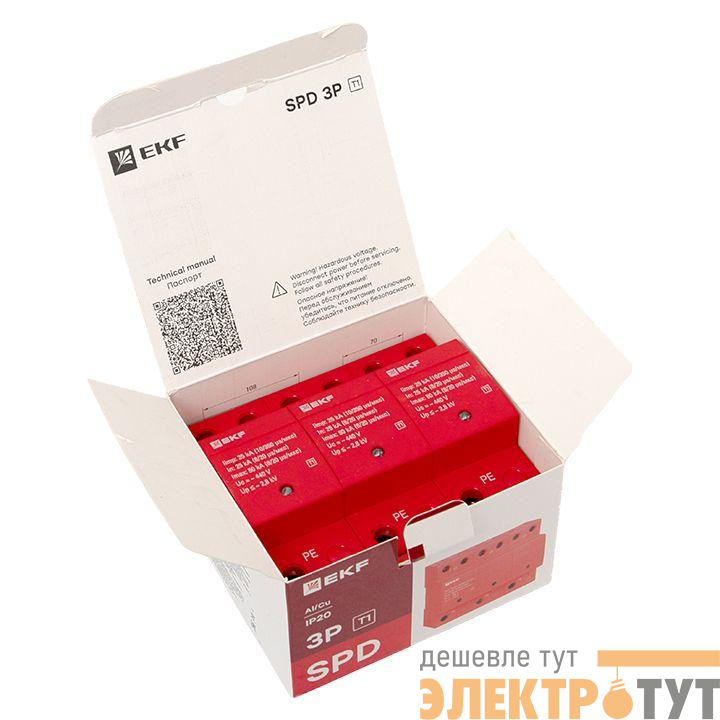 spd-t1-3p | Устройство защиты от импульсных перенапряжений класс 1 Iimp 25кА (10/350мкс) 3P EKF