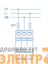 Предназначено для защиты двухпроводной системы постоянного тока. Рекомендуемый номинал предохранителя не менее 125 А gL/gG.