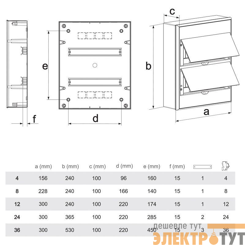 В комплектацию входят: стальная DIN-рейка (для крепления на ней различных модульных устройств и принадлежностей внутри щита), суппорт для шин, маркировочная лента для модулей, знак «Молния», набор винтов для крепления и инструкция по установке.