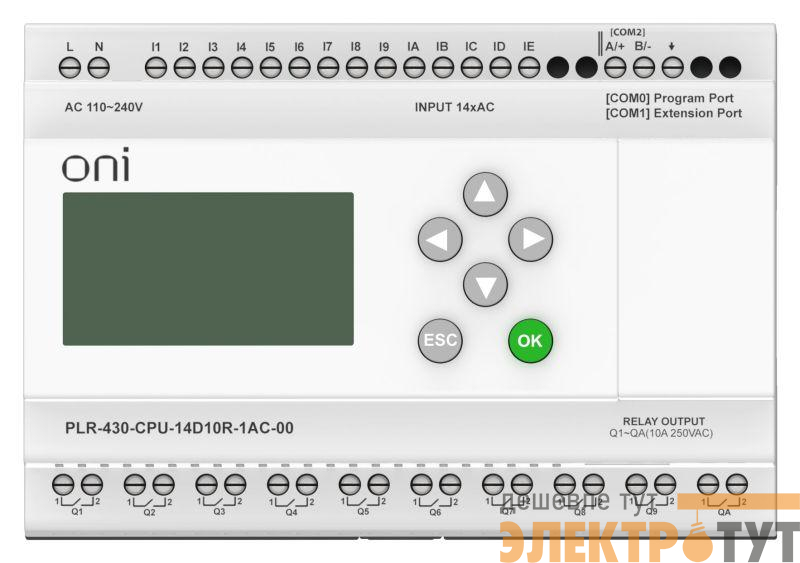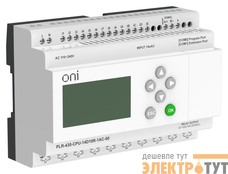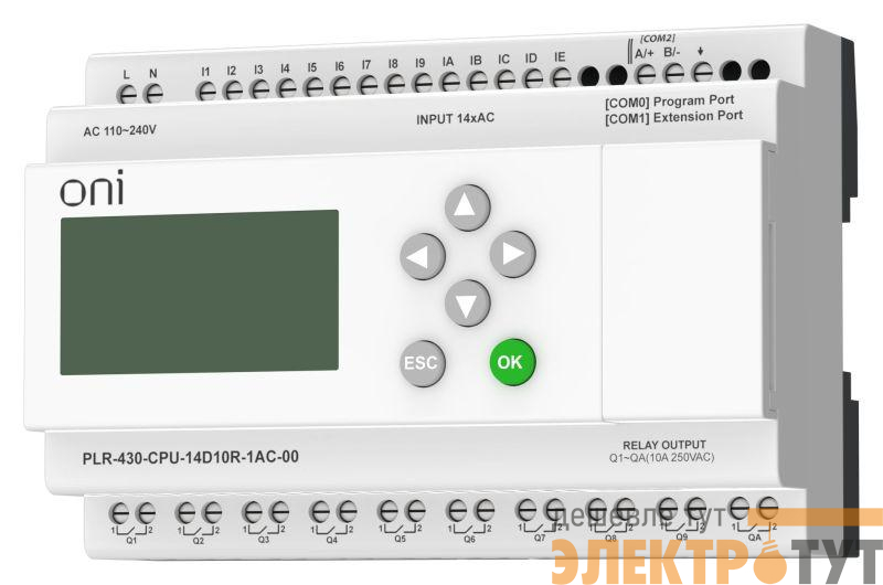 PLR-430-CPU-14D10R-1AC-00 | Модуль ЦПУ ПЛК 430 14 DI 10 RO 220В AC с экраном ONI