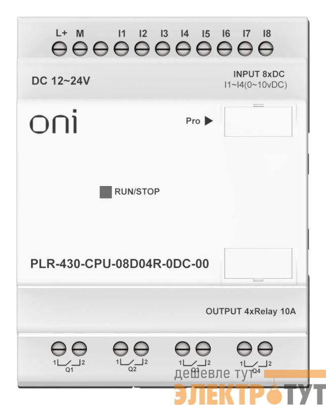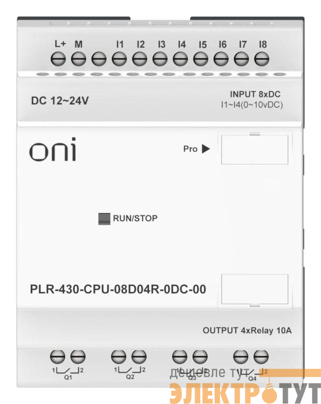 PLR-430-CPU-08D04R-0DC-00 | Модуль ЦПУ ПЛК 430 8 DI 4 RO 24В DC без экрана ONI