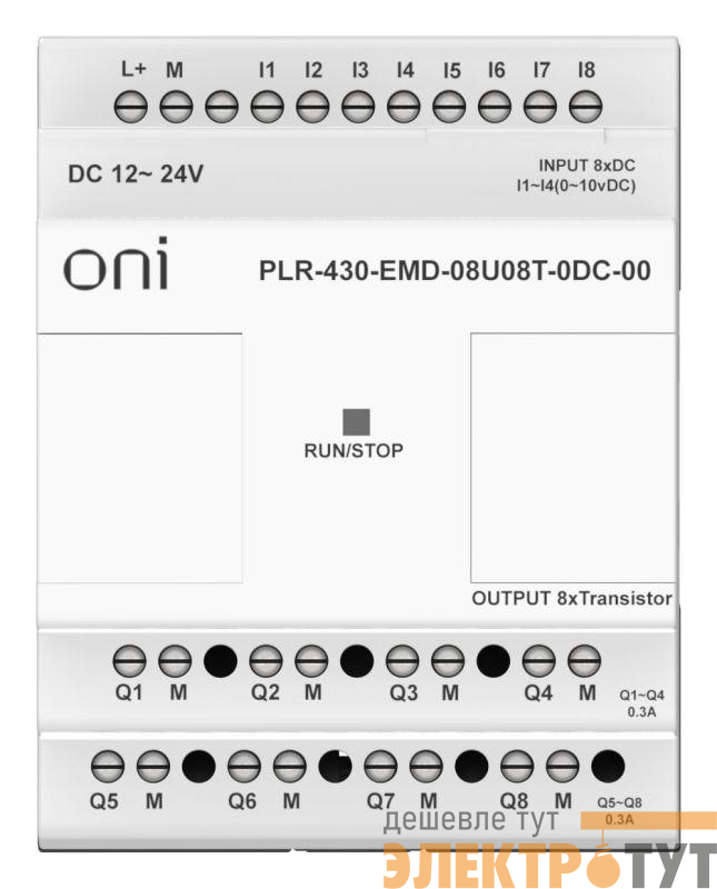 PLR-430-EMD-08U08T-0DC-00 | Модуль расширения входов выходов ПЛК 430 4 DI 4 UI (0-10В/DI) 8 TO 24В DC ONI