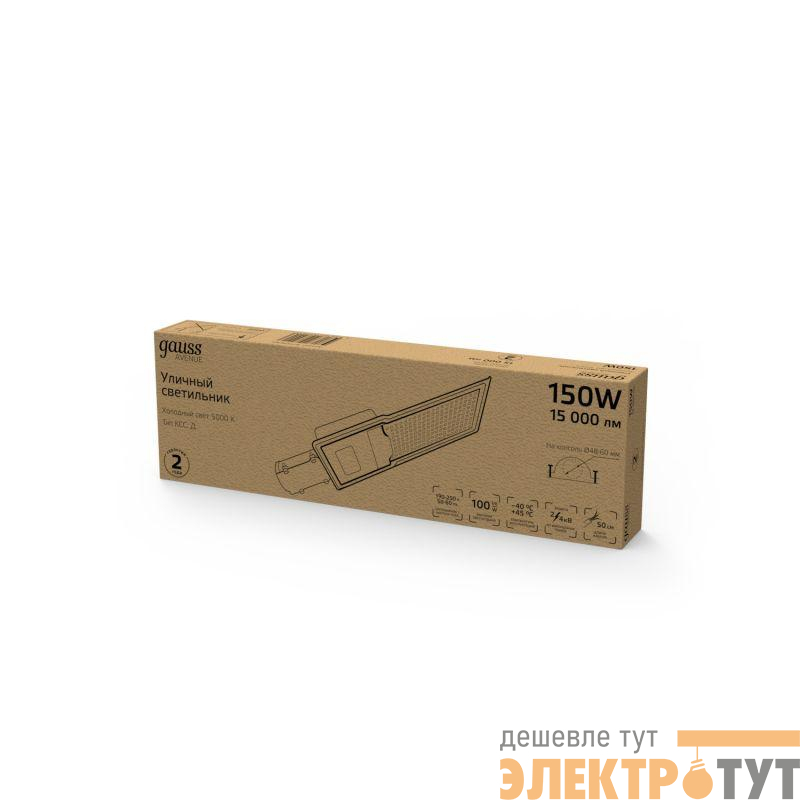 629536305 | Светильник светодиодный Avenue 150Вт 5000К IP65 15000лм 190-250В 546х170х67мм ДКУ уличный консольный КСС Д GAUSS