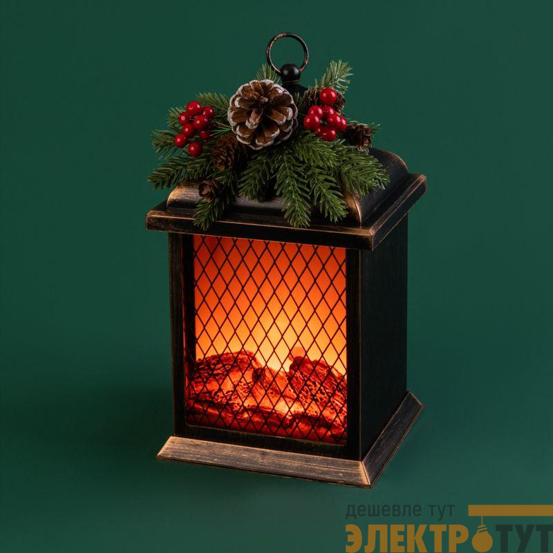 511-027 | Камин светодиодный Рождество с эффектом живого огня 15х14х26см батарейки 2хС (не в комплекте) и USB бронзовый Neon-Night
