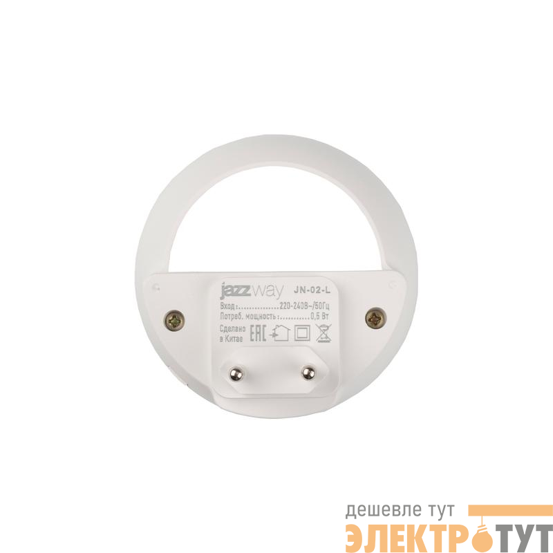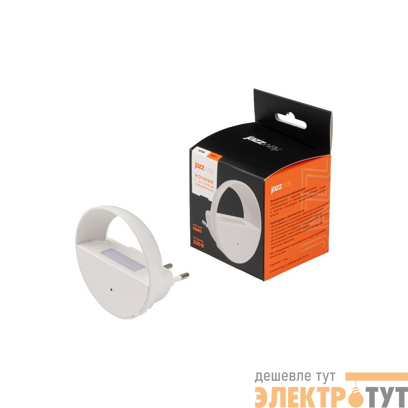 Светильник-ночник в розетку Jazzway JN-02-L. Мощность 0,5 Вт. Датчик освещенности - изделие автоматически включается в темноте. Упаковка - цветная коробка с подвесом