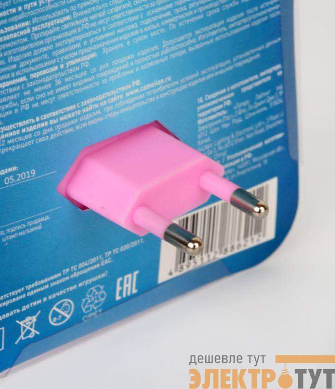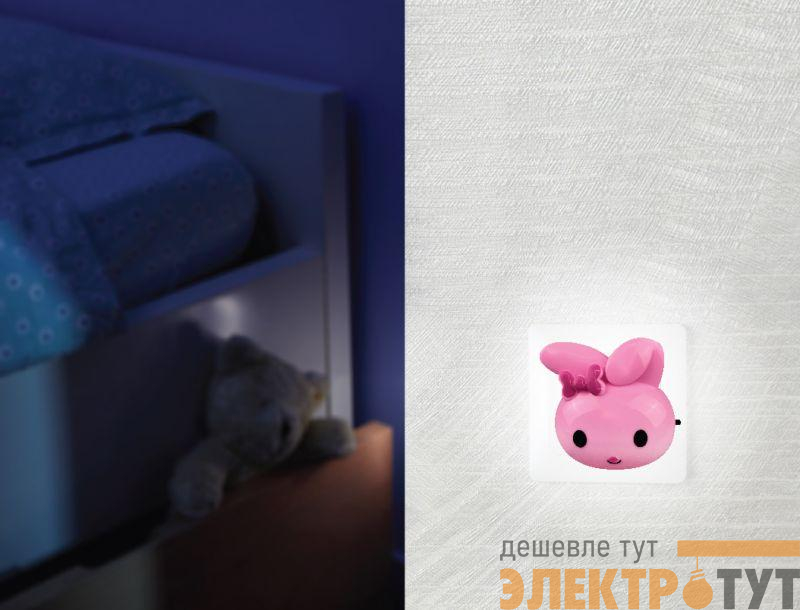 13808 | Светильник светодиодный NL-233 "Заяц" 220В ночник с выкл. розов. Camelion
