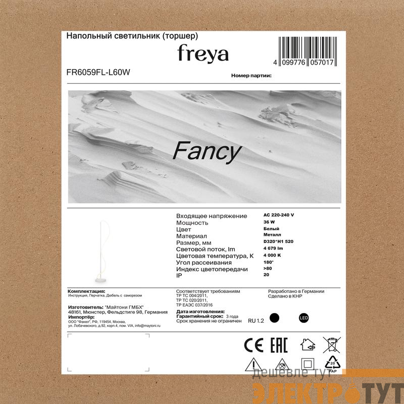 Светильник напольный (торшер) Fancy 36Вт IP20 Freya FR6059FL-L60W — стильный напольный торшер, который добавляет интерьеру элегантности и уюта. Благодаря своей мощности и конструкции, он обеспечивает достаточное количество света для комфортного чтения или отдыха.