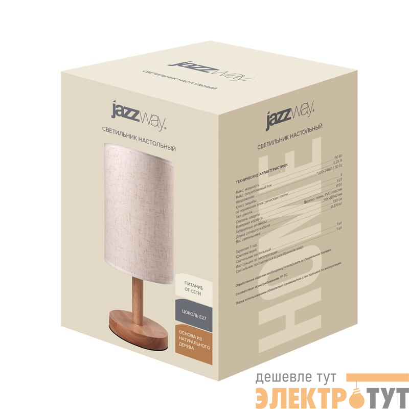 5058231 | Светильник настольный JH1-01-iv 1х60Вт E27 (основа: натуральное дерево) IP20 JazzWay