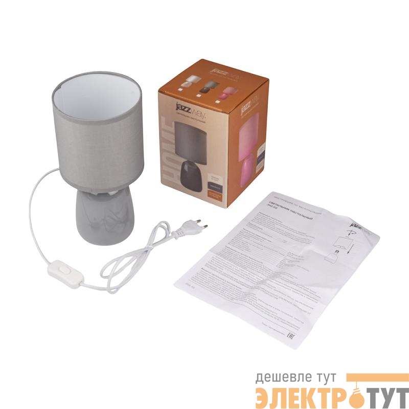 5062320 | Светильник настольный JH2-02-gy E14 IP20 130х130х255мм керамика; ткань; PVC-пластик сер. JazzWay