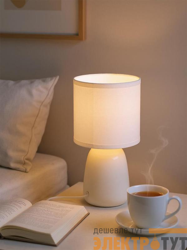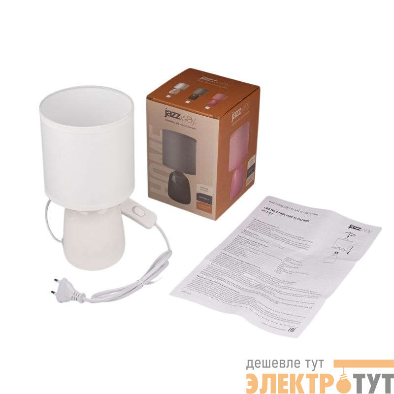 5062313 | Светильник настольный JH2-02-wh E14 IP20 130х130х255мм керамика; ткань; PVC-пластик бел. JazzWay