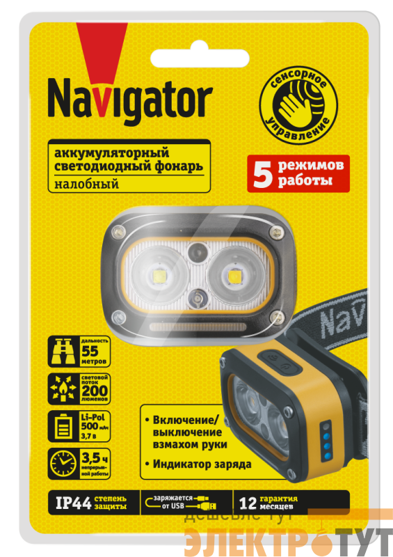 95628 | Фонарь аккумуляторный налобный 95 628 NPT-H43-ACCU 1LEDx3Вт 1LEDx3Вт 5реж Li-ion 0.5А.ч NAVIGATOR