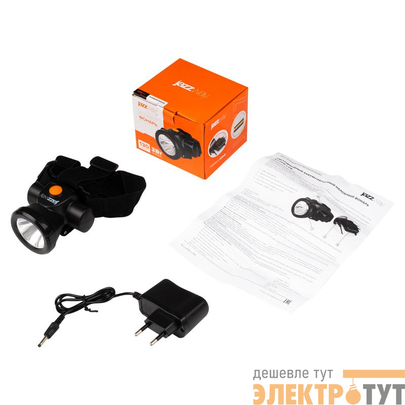 5024571 | Фонарь аккумуляторный налобный AccuH8-L3W 3Вт IP20 2 режима: яркий 4ч/экономичн. 15ч аккум. 2А.ч регулир. угол наклона JazzWay