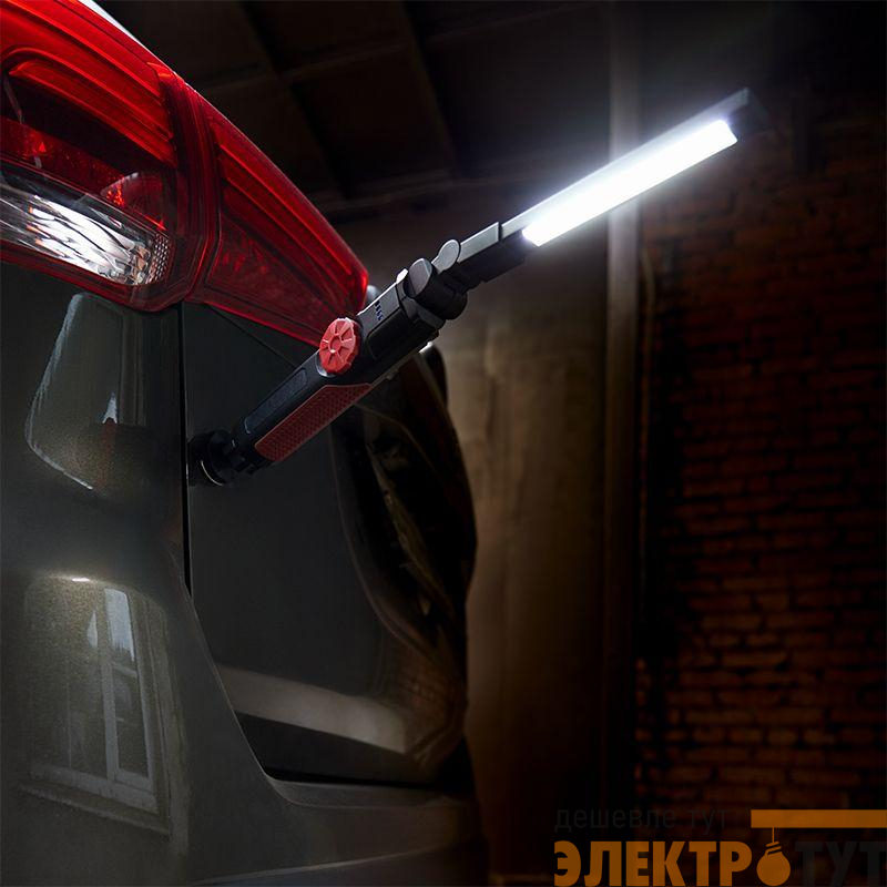 Автомобильный аккумуляторный светодиодный фонарь используется в гаражах и мастерских. Особенно полезен при необходимости ремонта в пути.