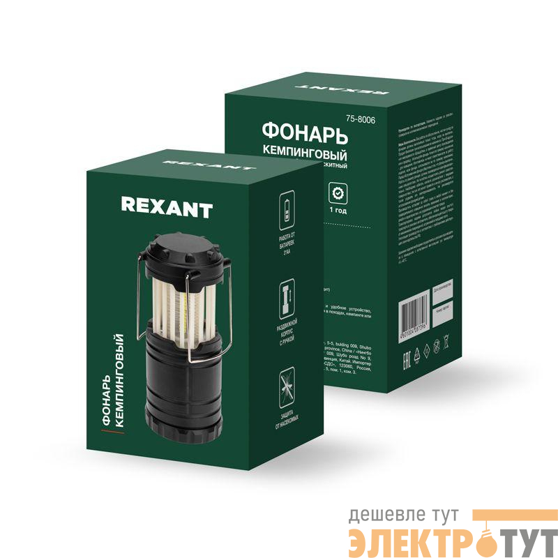 75-8006 | Фонарь кемпинговый раздвижной антимоскитный на подвесе Rexant