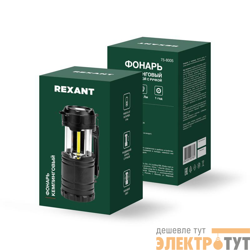 75-8005 | Фонарь кемпинговый раздвижной с ручкой Rexant