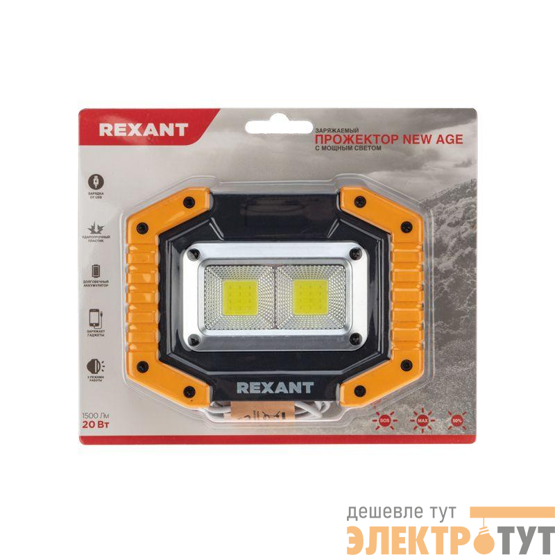 75-1700 | Фонарь прожекторный трехрежимный в противоударном корпусе с функцией Powerbank Rexant
