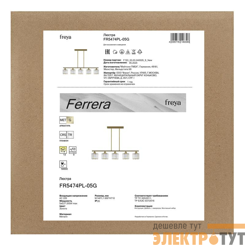 Люстра Ferrera Е27х5 IP20 Freya FR5474PL-05G — это элегантное и функциональное осветительное решение, которое станет прекрасным дополнением к интерьеру вашего дома. Благодаря своему дизайну люстра создаст уютную атмосферу и добавит изысканности любому пространству. Люстра Freya FR5474PL-05G отличается универсальностью и подойдёт для различных помещений — от гостиной до столовой. Её привлекательный внешний вид и простота установки делают её удобным выбором для создания комфортного освещения и улучшения эстетики интерьера.