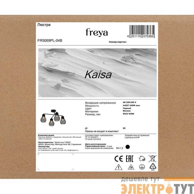 Люстра Kaisa Е27х4 60Вт IP20 Freya FR5069PL-04B — это элегантное и функциональное решение для интерьера, которое добавит в пространство свет и создаст уютную атмосферу. Благодаря своему дизайну люстра гармонично впишется в любой стиль помещения. Люстра Freya FR5069PL-04B отличается своей универсальностью и подойдёт для использования в различных помещениях — от гостиной до столовой. Её привлекательный внешний вид и простота установки делают её удобным решением для создания комфортного освещения и улучшения эстетики интерьера.