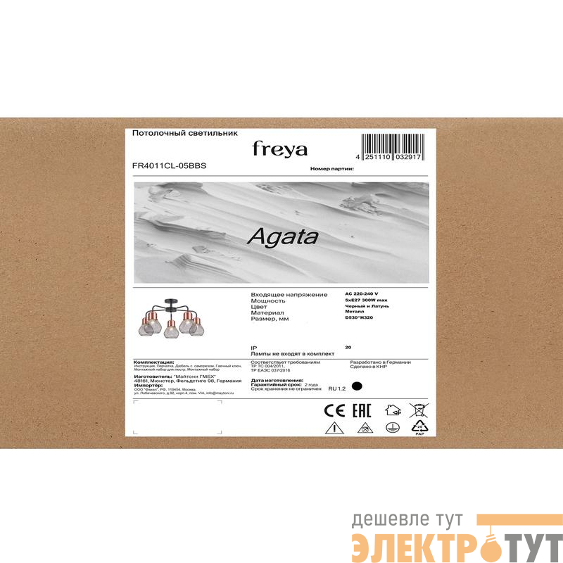 FR4011CL-05BBS | Светильник Agata 60Вт E27х5 IP20 потолочн. Freya