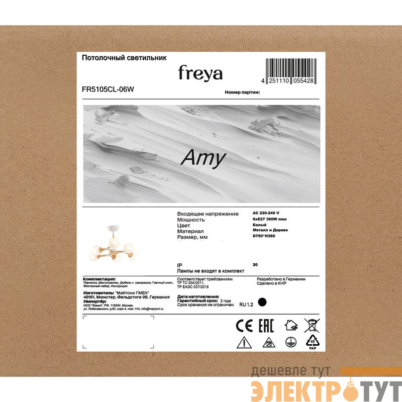 FR5105CL-06W | Светильник Amy 60Вт E27х6 IP20 потолочн. Freya